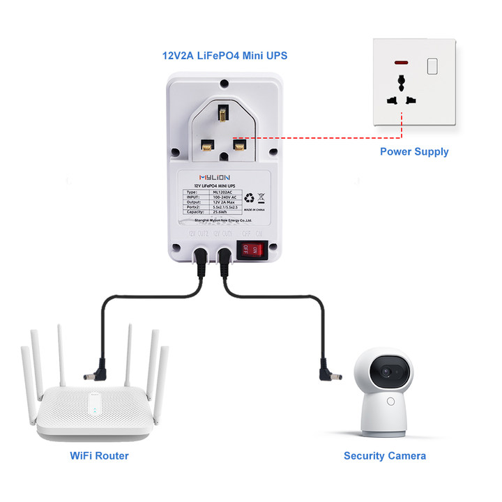 ML1202AC (Mylion 110V-230V AC Input 12V 2A DC Output Smart Charger LiFe PO4 Mini UPS)