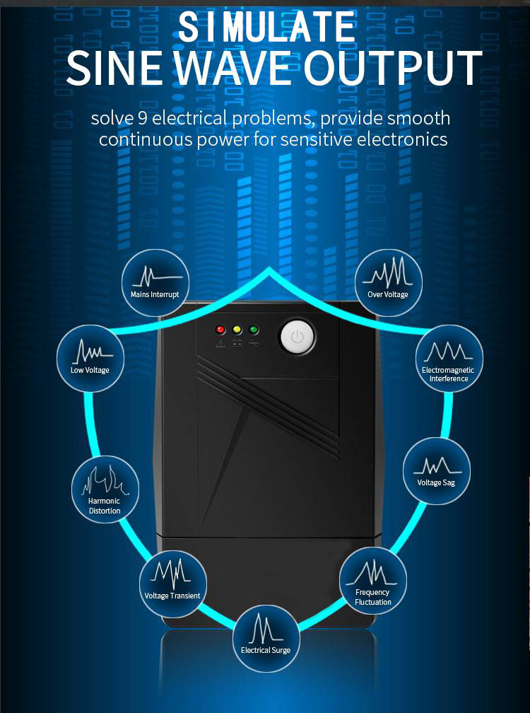 Mylion Cina Produttore Monofase Off Line Ups Batteria ML650VA 360W Onda sinusoidale simulata Offline Ups per computer